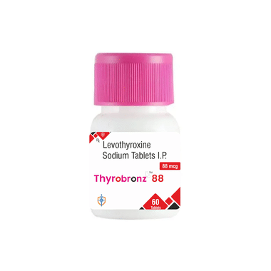 Thyrobronz 88 Tablet is a medicine used to treat an underactive thyroid gland (hypothyroidism). It replaces the hormone which is not being produced by your thyroid gland in sufficient quantity and helps regulate your body’s energy and metabolism.