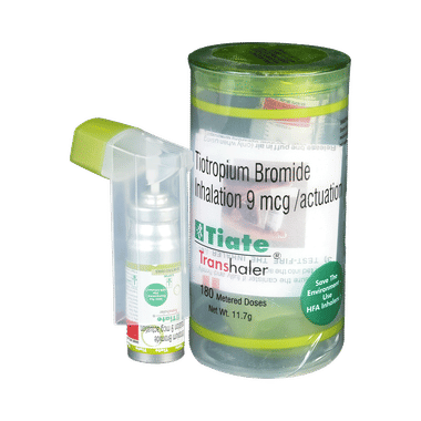 Tiate Transhaler is an anticholinergic medicine. It is used in the treatment of chronic obstructive pulmonary disease and asthma. It relaxes the airway muscles and makes it easier to breathe. This helps relieve symptoms such as chest tightness, shortness of breath, wheezing, and coughing.