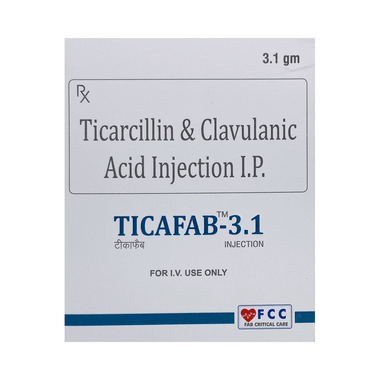 Ticafab 3.1 Injection is a combination of two medicines used to treat various types of bacterial infections such as urinary tract infections, bone and joint infections, stomach infections and skin infections. It fights against the infection by killing the microorganisms which cause bacterial infections.