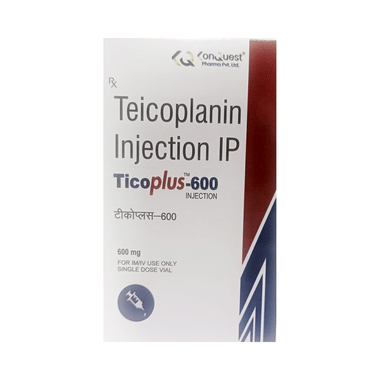 Ticoplus 600 Injection works by stopping the growth of bacteria and is useful for treating adults as well as children. It is a narrow-spectrum antibiotic that only covers the gram-positive type of bacteria. This medicine is given by drip or by direct injection into a vein, under the supervision of a healthcare professional. It may also be combined with other antibiotics to treat additional types of bacteria.