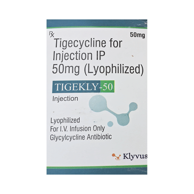 Tigekly 50 Injection is an antibiotic that fights bacteria. It is used to treat severe infections of the body like skin, intra-abdominal infections, and community-acquired bacterial pneumonia. It works by killing the bacteria that cause these problems. But, it will not treat a viral infection.