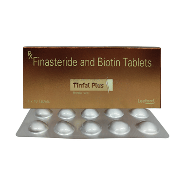 Tinfal Plus Tablet is a combination of two medicines used in the treatment of hair loss. It provides nutrition to promote hair growth and inhibits the production of the hormone responsible for hair loss. It may also be used for other medical conditions and disorders.Tinfal Plus Tablet can be taken with or without food. The dose and duration of the medicine should be taken as per prescription. An overdose of it may cause harm to your health. It is better to take the medicine at the same time each day and it must be swallowed as a whole. It may take some time for the medicine to be effective. The course of the treatment should be completed for better efficacy of the medicine.