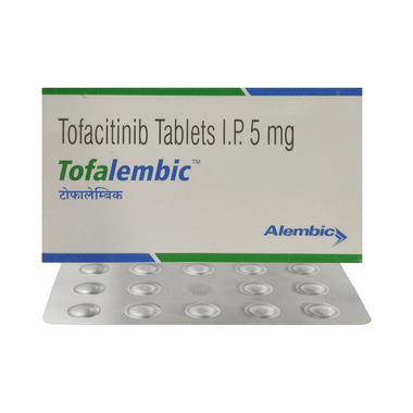 Tofalembic 5mg Tablet is used to treat moderate to severe rheumatoid arthritis, psoriatic arthritis, ankylosing spondylitis, and ulcerative colitis. It helps decrease pain, tenderness, and swelling in the joints by reducing inflammation. It also helps slow the progression of bone and joint damage.