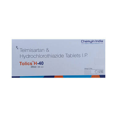 Tolics H 40 Tablet contains two medicines, both of which help to control high blood pressure. It is generally used when one medicine alone is not controlling the blood pressure effectively. Lowering blood pressure helps to reduce your risk of having a heart attack or a stroke in the future.