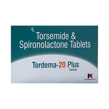 Tordema 20 Plus Tablet is a fixed-dose combination of torasemide (a loop diuretic) and spironolactone (an antagonist of aldosterone). Both are diuretics, and they help to remove excess fluid from the body. This medicine is prescribed for individuals with edema.