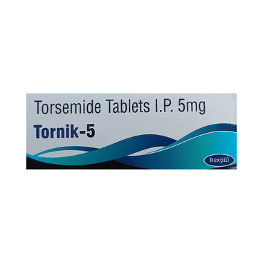 Tornik 5 Tablet is used to treat edema (swelling) caused by conditions such as heart failure, liver disease, kidney disease, or pulmonary edema. It helps the body eliminate excess fluid. It is also used to treat high blood pressure, helping to lower strain on the heart and improve overall circulation.
