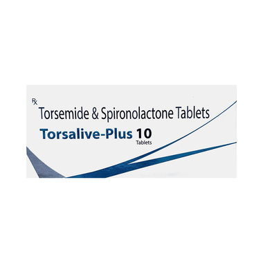 Torsalive-Plus 10 Tablet is a fixed-dose combination of torasemide (a loop diuretic) and spironolactone (an antagonist of aldosterone). Both are diuretics, and they help to remove excess fluid from the body. This medicine is prescribed for individuals with edema.