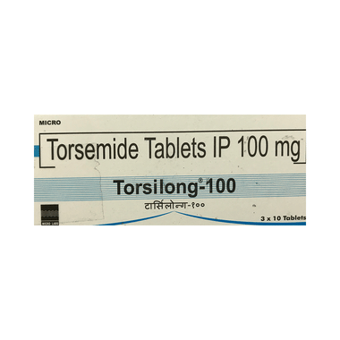 Torsilong 100 Tablet helps your body get rid of extra water and salt through urine. It may be used alone or in combination with other medicines as per the dose advised by your doctor. It can be taken with or without food and should be taken at the same time each day. It is best to avoid taking this medicine within 4 hours of your bedtime to prevent having to get up at night to urinate.