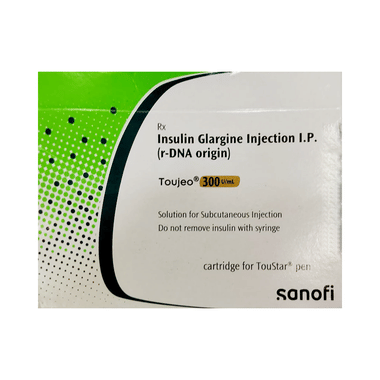 Toujeo 300U/ml Solution for Injection (1.5ml Each) is injected under the skin (subcutaneously) with a pen-like device or an insulin syringe and needle. There are various areas on the body where insulin can be injected, such as the abdomen (stomach area), thighs (upper portion of legs), upper arms, hips, or buttocks. Your doctor will show you the area of your skin where you should inject it.<br><br>Never inject it directly into a vein or a muscle. Earlier using Toujeo 300U/ml Solution for Injection (1.5ml Each), make sure the solution is colorless and free of particles. It should strictly be taken in the dose that has been prescribed to you. Follow your doctor’s instructions on administering Toujeo 300U/ml Solution for Injection (1.5ml Each) correctly and monitor your blood sugar levels regularly.