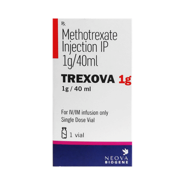 Trexova 1g Injection is given under the supervision of a healthcare professional and should not be self-administered. Your doctor will decide what dose is necessary and how often you need to take it. This will depend on what you are being treated for and may change from time to time. You should take it exactly as your doctor has advised. Taking it in the wrong way or taking too much can cause very serious side effects. It may take several weeks or months for you to see or feel the benefits but do not stop taking it unless your doctor tells you to. You should avoid drinking alcohol as it may increase your risk of liver damage.