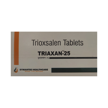 Triaxan 25 Tablet is used with ultraviolet A (UVA) light therapy to treat skin conditions like vitiligo (to increase skin pigmentation) and sometimes psoriasis. It works as a photosensitizer, making your skin more sensitive to UVA, and promoting repigmentation.
