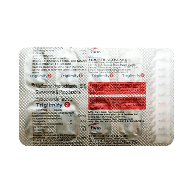 Triglimify 2 Tablet SR should be taken in the dose and duration as advised by your doctor. It must be taken with food to avoid stomach upset. If you miss a dose, take it as soon as possible. However, if it is almost time for your next dose, skip the missed dose and go back to your regular schedule. Do not double the dose. Overdose may lead to low blood sugar (hypoglycemia).