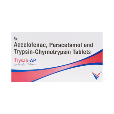 Trysab-AP Tablet is a combination of four medicines: Aceclofenac, Paracetamol, Trypsin and Chymotrypsin. This medicine helps in decreasing pain and swelling. It lowers the levels of chemical substances in the body that causes pain and swelling.