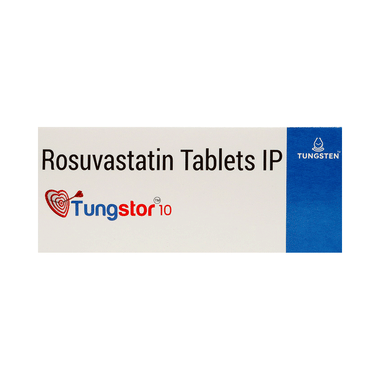 Tungstor 10 Tablet belongs to a group of medicines called statins. It is used to lower cholesterol and triglyceride levels and reduce the risk of heart disease. Cholesterol is a fatty substance that builds up in your blood vessels and causes narrowing, which may lead to a heart attack or stroke.