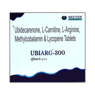 Ubiarg 300 Tablet is a nutritional supplement used to address nutritional deficiencies in the body. It helps in the various functions of the body such as blood flow, nerve and brain health, and protects the cells from oxidative damage, contributing to overall well-being.