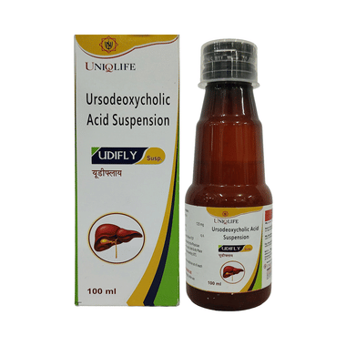Udifly Oral Suspension is a medicine used to dissolve certain gallstones and prevent them from forming. It helps break down the cholesterol that has converted into stones in your gallbladder, thereby dissolving the stones. It is also used to treat a type of liver disease called primary biliary cirrhosis.Udifly Oral Suspension should be swallowed whole after a meal and with a glass of milk or water. The dose will depend on what you are being treated for and your health condition. Take it regularly to get maximum benefit, and keep taking it for as long as prescribed (several months or longer). Retain taking it even if your symptoms disappear.
