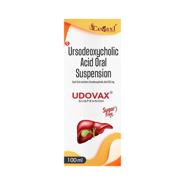 Udovax Oral Suspension Sugar Free is a medicine used to dissolve certain gallstones and prevent them from forming. It helps break down the cholesterol that has converted into stones in your gallbladder, thereby dissolving the stones. It is also used to treat a type of liver disease called primary biliary cirrhosis.Udovax Oral Suspension Sugar Free should be swallowed whole after a meal and with a glass of milk or water. The dose will depend on what you are being treated for and your health condition. Take it regularly to get maximum benefit, and keep taking it for as long as prescribed (several months or longer). Retain taking it even if your symptoms disappear.