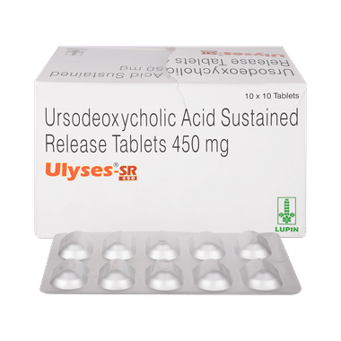 Ulyses 450mg Tablet SR is a medicine used to dissolve certain gallstones and prevent them from forming. It helps break down the cholesterol that has converted into stones in your gallbladder, thereby dissolving the stones. It is also used to treat a type of liver disease called primary biliary cirrhosis.