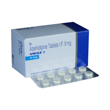 Uniaz 8mg Tablet is a medicine used to treat high blood pressure. It belongs to a group of medicines that block the calcium channels in the blood vessel. It works by relaxing the blood vessels in patients with high blood pressure. This widens the diameter of the blood vessels which helps the blood to pass through them more easily.