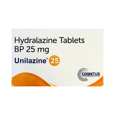 UNIlazine 25 Tablet belongs to a class of drugs known as vasodilators and is used for the treatment of hypertension (high blood pressure). It is also used in combination with other medicines in the treatment of heart failure.UNIlazine 25 Tablet works by relaxing and enlarging certain small blood vessels so that blood flows through them more easily. You must follow your doctor’s instructions and take the medicine in the right amount, each day. It will help keep your blood pressure down.
