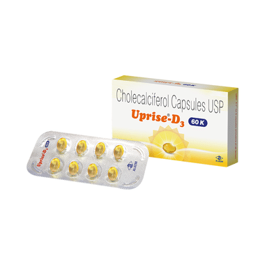 Uprise-D3 60K Capsule is used in the treatment of vitamin D deficiency and osteoporosis. It helps the body to absorb calcium. Calcium is essential for maintaining strong and healthy bones. it is used when your diet does not provide enough.