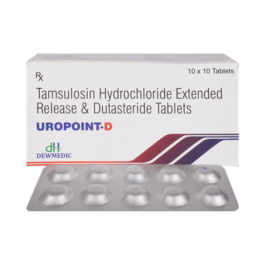 Uropoint D 0.4mg/0.5mg Tablet is a combination of two medicines that work in different ways to treat men with an enlarged prostate gland. It helps to relieve symptoms such as difficulty urinating or needing to go to the toilet more often. It is not used to prevent prostate cancer.