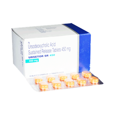 Ursetor SR 450 Tablet is a medicine used to dissolve certain gallstones and prevent them from forming. It helps break down the cholesterol that has converted into stones in your gallbladder, thereby dissolving the stones. It is also used to treat a type of liver disease called primary biliary cirrhosis.