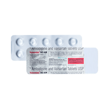 Valembic 80 AM Tablet contains two medicines, both of which help to control high blood pressure. It lowers the blood pressure by relaxing the blood vessels and making it easier for your heart to pump blood around your body. This will reduce your risk of having a heart attack or a stroke.