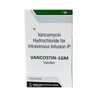 Vancostin 1gm Injection is an antibiotic used in the treatment of severe bacterial infections in hospitalized patients. It is effective against infections of the respiratory tract (e.g. pneumonia), urinary tract, skin and soft tissues, bones and joints, heart, blood, and others.