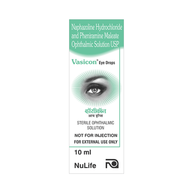 Vasicon Eye Drop is a prescription medicine used to treat allergic eye diseases. It provides temporary relief from redness and discomfort due to minor eye irritations and burning and irritation due to dryness of the eye.