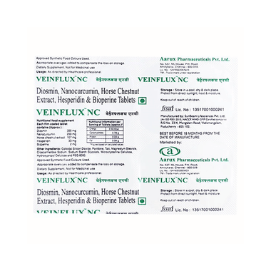 Veinflux NC Tablet is used to help relieve symptoms from vein and capillary (small blood vessel) problems, such as painful or heavy legs from chronic venous insufficiency, ankle swelling, night cramps, and discomfort from varicose veins. It is also used short-term for painful hemorrhoids to reduce swelling and bleeding.