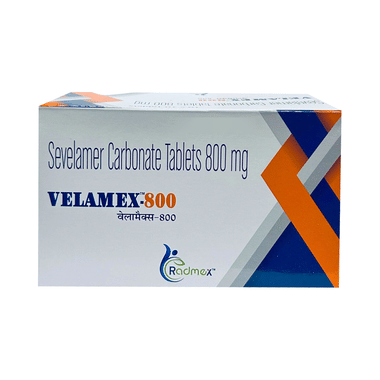 Velamex 800 Tablet is used to treat increased phosphate levels in the blood. It is used in patients who are on dialysis due to severe kidney disease. It inhibits the absorption of phosphate from the intestine and lowers the phosphate levels in the blood.