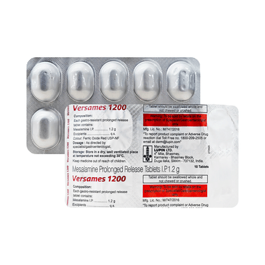 Versames 1200mg Tablet may also be used to treat another type of bowel disease known as Crohn’s ileocolitis. It should be taken with food. The dose will depend on what you are being treated for but take it exactly as your doctor prescribes. You should keep taking this medicine for as long as your doctor recommends. If you stop treatment too early your symptoms may come back and your condition may worsen.