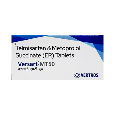 It is advised to take Versart-MT50 Tablet ER with food at a fixed time each day to maintain consistent levels of medicine in the blood. Retain taking it for as long as advised by your doctor. Even if you feel well, do not stop this medicine on your own because high blood pressure often has no symptoms. If you stop taking it, your condition may get worse. Retaining active with regular exercise, reducing your weight and eating a healthy diet will also help control your blood pressure. Follow your doctor’s advice while taking this medicine.
