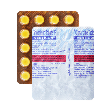The dosage and duration of this medication should be taken as advised by the doctor. VertigOn Tablet is meant for oral use and should preferably be taken after meals. The tablets may be sucked, chewed, or swallowed as a whole with water.
