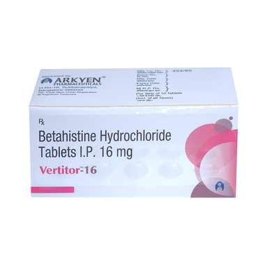 Vertitor 16 Tablet is used to prevent and treat a disorder of the inner ear known as Ménière’s disease. The symptoms include dizziness (vertigo), ringing in the ears (tinnitus), and loss of hearing, probably caused by fluid in the ear. This medicine helps relieve the symptoms by reducing the amount of fluid.
