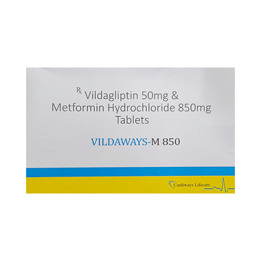 Vildaways-M 850 Tablet is a combination of two medicines that control high blood sugar levels in people with type 2 diabetes mellitus. This helps prevent serious complications of diabetes, such as kidney damage and blindness, and may also reduce your chances of having a heart attack or stroke.