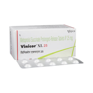 Vinicor XL 25 Tablet PR may be prescribed alone or together with other medications. The dose and frequency will depend on what you are taking it for and the severity of your condition. It may be taken on an empty stomach or with a meal, but take it regularly at the same time each day to get the maximum benefit. It may take several weeks before you get the full benefit of this medicine, and you may need to take it for the rest of your life. However, it is important to continue taking it even if you feel well. Most people with high blood pressure do not have symptoms. If you stop taking it, your condition may worsen.