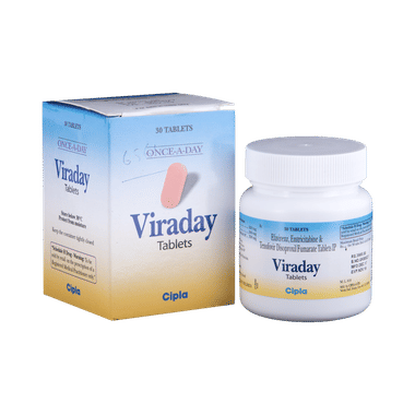 Viraday Tablet restricts the growth of HIV in the body and reduces the risk of getting HIV-related complications to improve the lifespan of an individual. The medicine should be taken in an empty stomach for better efficacy. Taking these medicines regularly at the same time increases their effectiveness. A dose of this medicine should not be missed as it can affect your recovery. It is important to complete the full course of the treatment until your doctor advises you to stop it.