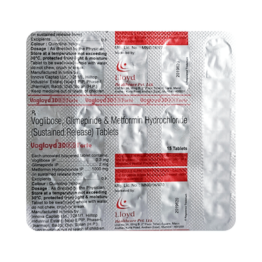 Find out detailed description, uses, directions of use, side effects, warnings and precautions, frequently asked questions about Vogloyd 3D Forte 2mg/1000mg/0.3mg Tablet SR