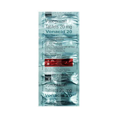 Vonacid 20mg Tablet is used to treat conditions where the stomach produces too much acid, such as stomach ulcers and gastroesophageal reflux disease (GERD).