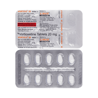 Vortica 20mg Tablet is a medicine prescribed to treat depression in adults. It belongs to a group of antidepressants known as serotonin modulator and stimulator (SMS). This medication helps to improve mood and energy levels, and reduce sadness and feelings of worthlessness in people with depression.Vortica 20mg Tablet may be taken with or without food but take it at the same time each day to get the most benefit. The dose and how often you need it will be decided by your doctor so that you get the right amount to control your symptoms. It may be increased gradually. If you have trouble sleeping it may be best to take this medicine in the morning. It may take a few weeks before you start to feel better. Do not change the dose or stop taking it without talking to your doctor, even if you feel well. Your condition may get worse or you may suffer unpleasant withdrawal symptoms. Let your doctor know if you do not see any improvement after four weeks.