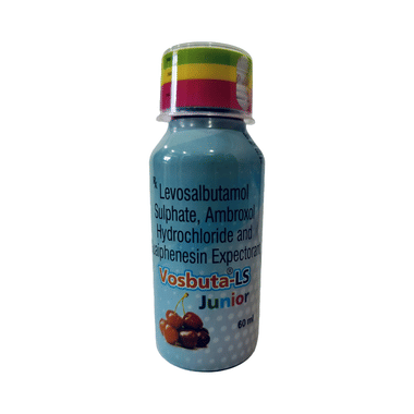 Vosbuta-LS Junior Expectorant Strawberry is used to treat cough with mucus (wet or productive cough). It helps thin and loosen phlegm so it can be coughed out more easily and also relaxes the airway muscles to improve breathing. It contains ambroxol, a mucolytic that thins mucus; guaifenesin, an expectorant that reduces mucus stickiness; and levosalbutamol, a bronchodilator that relaxes airway muscles. Because it works by clearing mucus, it is usually not recommended for dry cough where little or no phlegm is present. Employ it only as advised by a doctor.