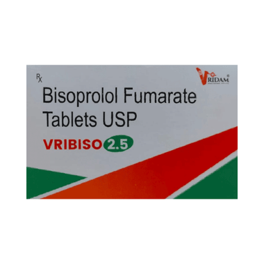Vribiso 2.5 Tablet helps improve cardiac output and prevent heart failure progression. It helps regulate blood pressure, enhances blood flow, and supports overall cardiovascular health. This makes it essential to post-myocardial infarction (heart attack) care, ensuring long-term heart protection. It may also be used to relieve the symptoms caused by an overactive thyroid gland.