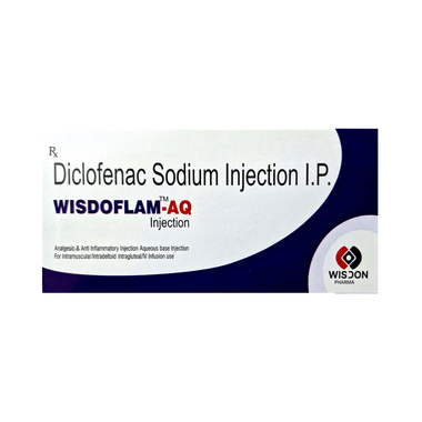 Wisdoflam-AQ Injection is a pain-relieving medicine. It is used to treat various types of pain, swelling, stiffness, and joint pain in conditions like rheumatoid arthritis, osteoarthritis, and acute musculoskeletal injuries. It is given in cases where oral administration is not possible.