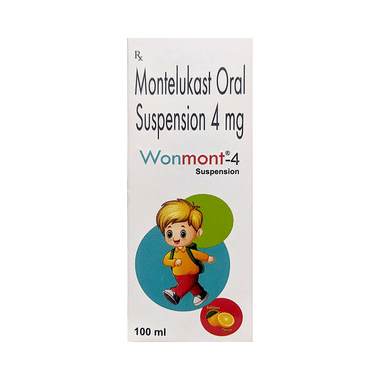 Wonmont 4 Oral Suspension Delicious Orange is a prescription medicine used for asthma prevention and for the treatment of allergy symptoms such as sneezing and runny nose. It reduces inflammation in the airways and makes breathing easier.
