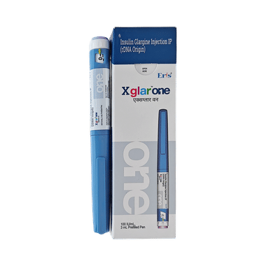 Xglar One 100IU Prefilled Syringe is a man-made insulin that is very similar to human insulin. It has a long and steady (constant) effect on blood sugar levels, lasting an entire day. This makes it suitable for use once daily. It treats type 2 diabetes mellitus in adults and type 1 diabetes mellitus in adults and children.