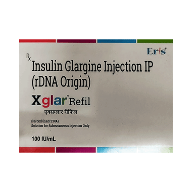 Xglar Refil Injection (3ml Each) can be prescribed alone or in combination with fast-acting insulin or other diabetes medicines. Your doctor or nurse will teach you how to inject it under the skin correctly. You should use this medicine regularly per the dose advised to get the maximum benefit. If you stop taking it, your blood sugar levels may rise very high, which may put you at risk of serious complications. It is only a part of the treatment program that should include a healthy diet, regular exercise, and weight reduction, as your doctor advises.
