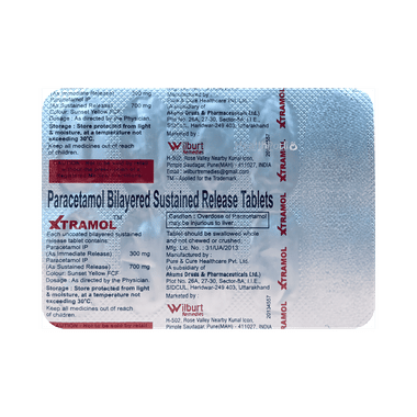 Xtramol 1000mg Tablet SR helps relieve pain and fever by blocking the release of certain chemical messengers responsible for fever and pain. It is used to treat headaches, migraine, toothaches, sore throats, period (menstrual) pains, arthritis, muscle aches, and the common cold.Xtramol 1000mg Tablet SR may be prescribed alone or in combination with another medicine. You should take it regularly as advised by your doctor. It is usually best taken with food otherwise it may upset your stomach. Do not take more or use it for longer than recommended.