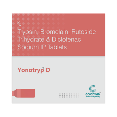 Composition: Trypsin (48mg) + Bromelain (90mg) + Rutoside (100mg) + Diclofenac (50mg)